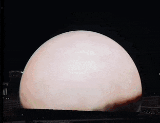 在沒有重大賽事和演出活動的時候,MSG Sphere也同樣閑不住。它可以是月亮,也可以是呆萌可愛的表情包,還會變成睜開的眼睛,甚至會轉來轉去,極為逼真: