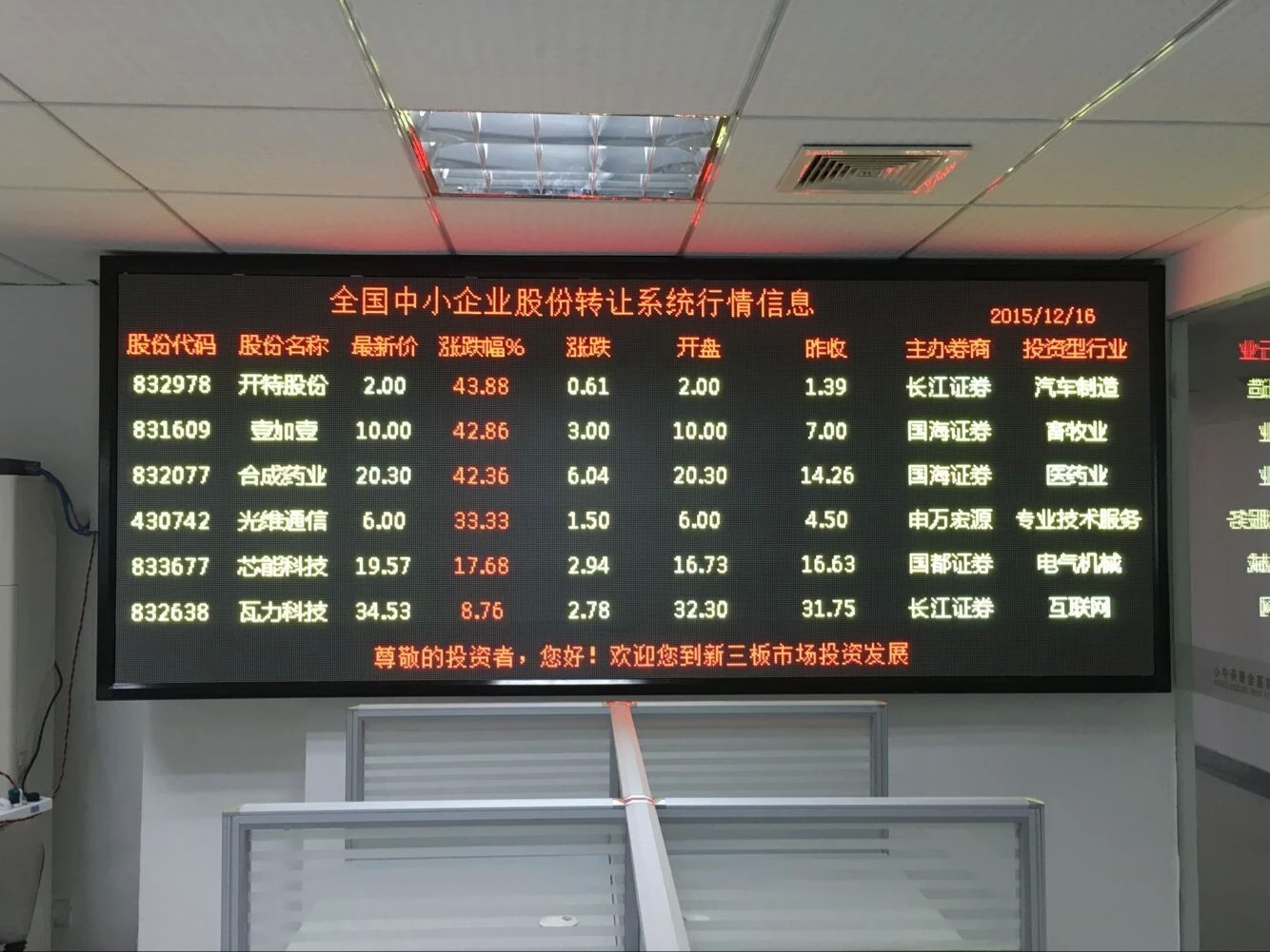 室內F3.75雙色,用于股市信息更新。
